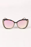 Wavy Arms Metallic Accent Mirrored Butterfly Sunglasses