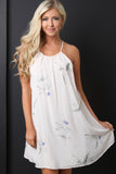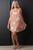 This cute dress features chiffon fabrication with a floral print, a scooped neckline, sleeveless construction, crochet design at back with three button closures, and lined. Accessory sold separately. Made in U.S.A. 100% Polyester.